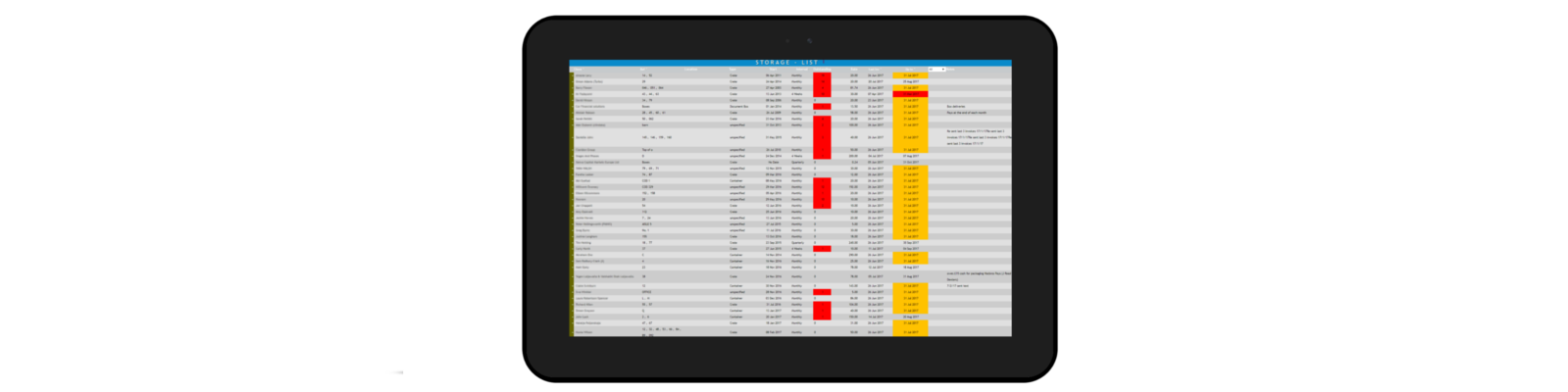 Assign your customers storage from a list of non-allocated units in your warehouse. Get rid of redundant paperwork by keeping your customers storage schedule online and accessible only to you or your warehouse manager. Quickly see which customers have outstanding payments as shown in red and raise their invoices accordingly with your chosen interval and rate.